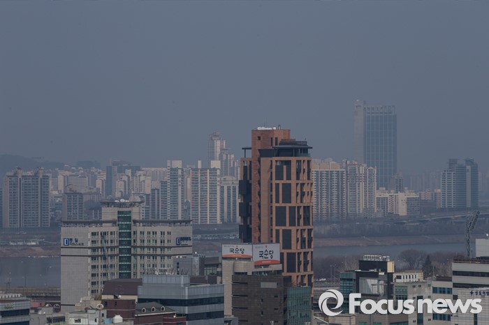 (서울=포커스뉴스) 서울 한 낮 기온이 11도까지 상승한 14일 오후 서울 강남구에서 바라본 도심에 보통 수준의 미세먼지가 끼어 있다.