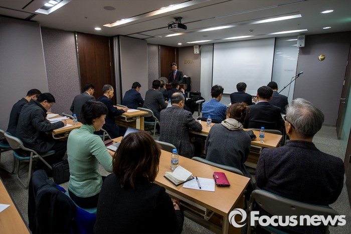 (서울=포커스뉴스) 미국에서 파생금융상품 키코(KIKO) 소송 재개를 이끌어 낸 법무법인 김앤배의 김봉준 대표변호사가 14일 오후 서울 강남구 로고스 법무법인 대회의실에서 열린 '키코사건 미국 직소송 설명회'에서 피해를 입은 국내기업 관계자들에게 소송 진행 상황을 설명 하고 있다.