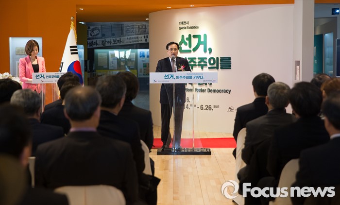 (서울=포커스뉴스) 문상부 중앙선거관리위원회 상임위원이 14일 오후 서울 종로구 대한민국역사박물관에서 열린 대한민국 선거의 역사 '선거, 민주주의를 키우다.' 특별전시회 개막식에 참석해 인사말을 하고 있다.
