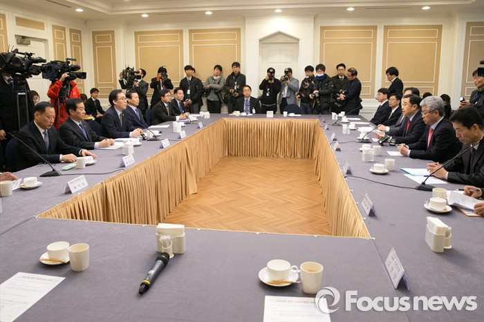 (서울=포커스뉴스) 15일 오전 서울 여의도 국회 귀빈식당에서 안보상황 점검 긴급 당정협의가 열리고 있다.