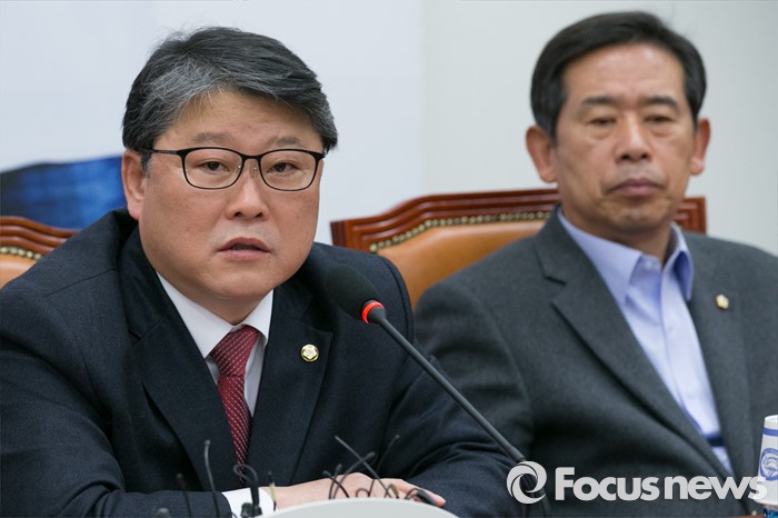 (서울=포커스뉴스) 조원진(왼쪽) 새누리당 원내수석부대표가 15일 오전 서울 여의도 국회에서 열린 원내대책회의에 참석해, 발언하고 있다.