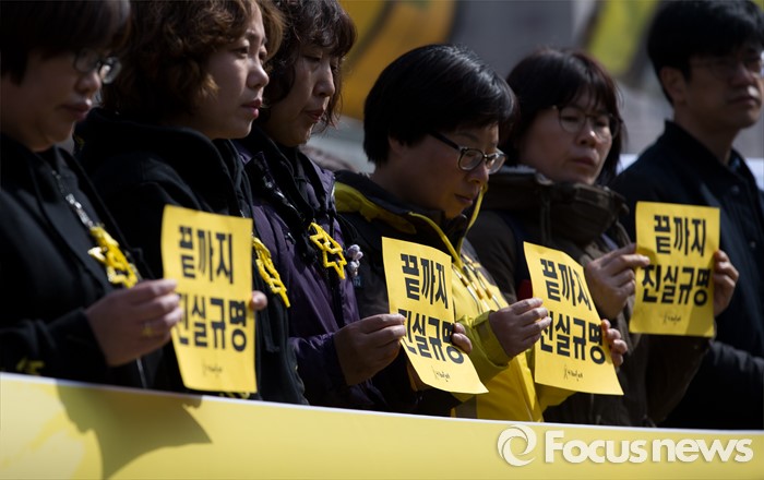 (서울=포커스뉴스) 15일 오후 서울 광화문광장에서 416가족협의회와 4.16연대가 세월호 700일 기획전시 개관식 및 2주기 추모의 달 공표 기자회견을 하고 있다.