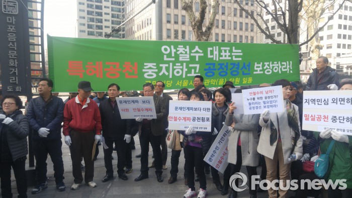 (서울=포커스뉴스) 국민의당이 당사 인근에서 공천결과에 항의하는 당원들의 시위가 진행되는 등 공천 내홍에 휩싸였다.