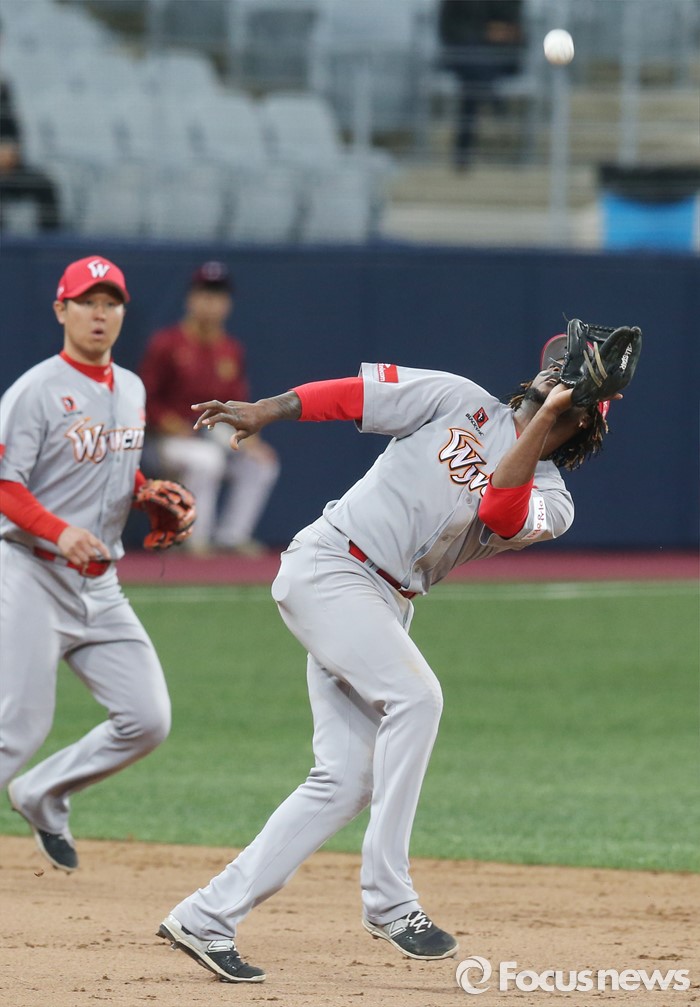(서울=포커스뉴스) 15일 서울 고척스카이돔에서 열린 2016 프로야구 시범경기 SK-넥센 경기 9회말 넥센 선두타자 장영석의 내야 뜬공을 SK 유격수 고메즈가 잡고 있다.