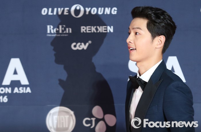 (서울=포커스뉴스) 15일 오후 서울 동대문구 동대문 디자인 플라자에서 열린 '스타일 아이콘 아시아 2016' 에 참석한 배우 송중기가 포토타임을 갖고 있다.