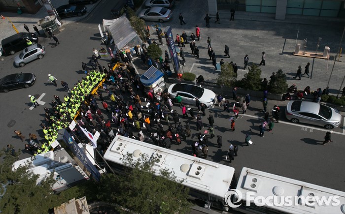 (서울=포커스뉴스) 16일 오전 서울 여의도 새누리당사 앞에서 공천 배제(컷오프)된 이재오 의원의 지지자들이 공천관리위원회의 결정 철회를 촉구하는 집회를 하고 있다.