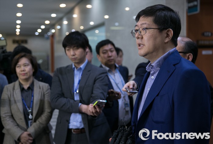 (서울=포커스뉴스) 김홍걸 더불어민주당 국민통합위원장이 16일 오전 서울 여의도 국회 정론관에서 기자회견을 열고 20대 총선 불출마를 공식 선언한 뒤 취재진 질문에 답하고 있다.