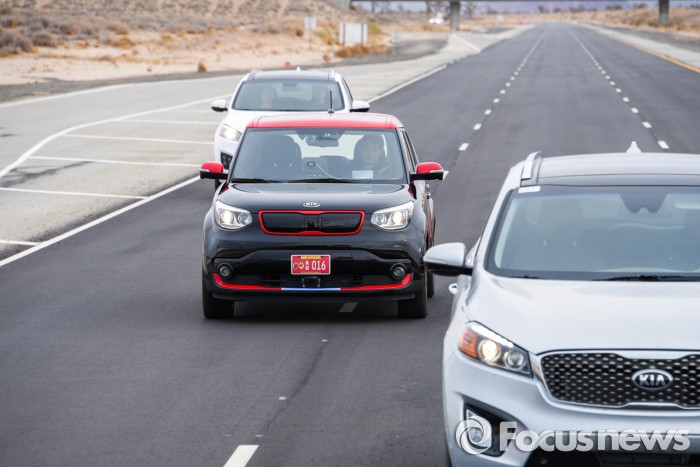 한편, 자동차미래연구소는 내달 21일 국회 소회의실에서 '자율주행차 사고에 따른 법적 책임 토론회'를 개최한다.기아차가 2016 CES에 출품하는 쏘울 EV자율주행차의 주행 사진 <사진제공=기아자동차>