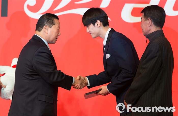 (서울=포커스뉴스) 16일 오전 서울 중구 더플라자호텔 그랜드볼룸에서 제21회 코카콜라 체육대상 시상식에 참석한 이대훈(태권도)이 우수선수상을 수상하고 있다.