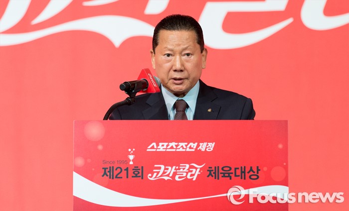 (서울=포커스뉴스) 16일 오전 서울 중구 더플라자호텔 그랜드볼룸에서 제21회 코카콜라 체육대상 시상식에 참석한 김정행 대한체육회 회장이 축사를 하고 있다.