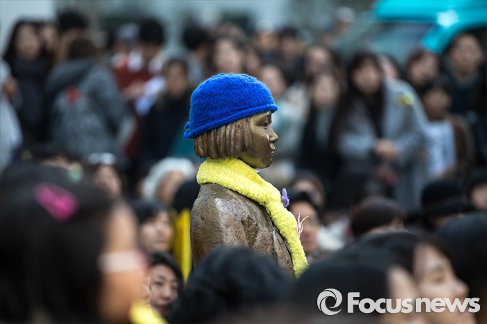 (서울=포커스뉴스) 16일 오후 서울 종로구 옛 일본 대사관 앞에서 '일본군 위안부 문제해결을 위한 1222차 정기 수요집회'가 열리고 있다.