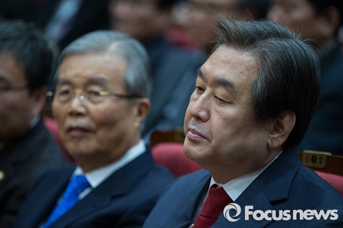 (서울=포커스뉴스) 김무성 새누리당 대표(오른쪽)와 김종인 더불어민주당 대표가 16일 오후 서울 여의도 국회 의원회관에서 열린 '자영업자 정책연대 및 생존권 사수 출정식'에 참석하고 있다.