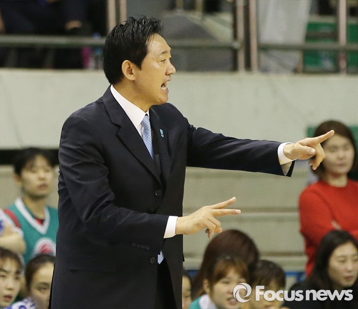 (춘천=포커스뉴스) 춘천호반체육관에서 열린 2015~2016 여자프로농구 우리은행-KEB하나 챔피언결정전 1차전에서 KEB하나 박종천 감독이 선수들을 독려하고 있다.