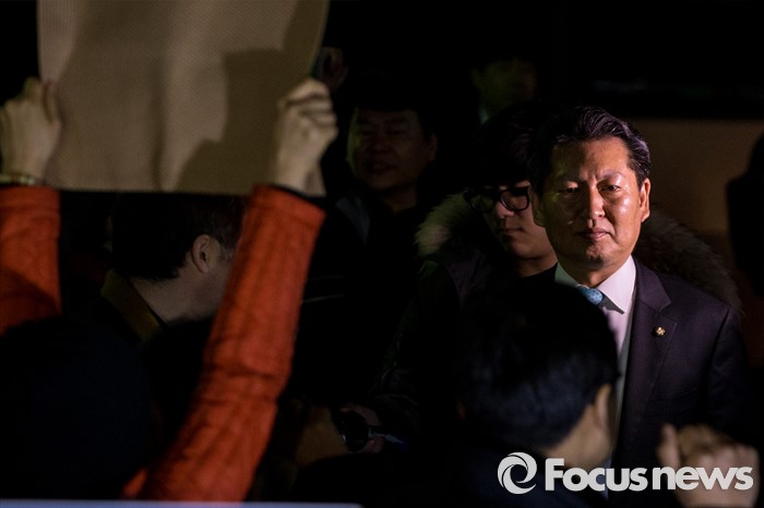 △ 기자회견장 향하는 정청래