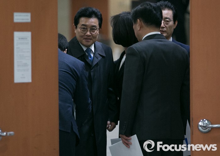 (서울=포커스뉴스) 공천 배제(컷오프)된 전병헌 더불어민주당 의원이 17일 오전 서울 여의도 국회 정론관에서 기자회견에 참석한 지역구 당원들과 인사하고 있다.