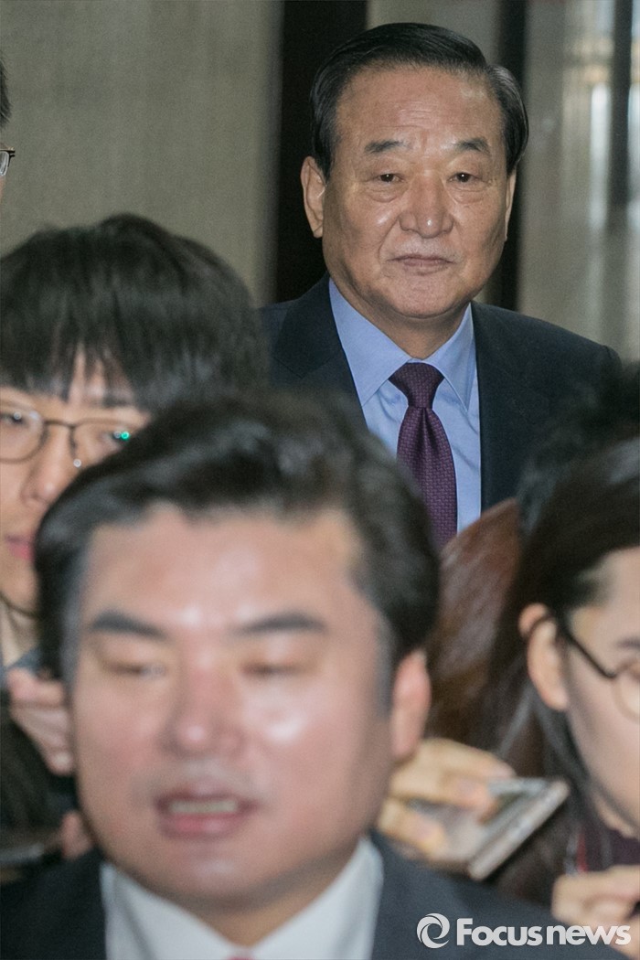 (서울=포커스뉴스) 원유철(앞) 새누리당 원내대표가 17일 오전 서울 여의도 국회에서 열린 최고위원회 간담회에 참석하며, 기자들의 질문에 답변하는 동안, 서청원(뒤) 최고위원이 바라보고 있다. 김무성 대표가 불참한 이날 새누리당 최고위 간담회에서는 원유철 원내대표와 일부 최고위원들이 참석해, 공천관리위원회의 의결과 관련해 논의하는 것으로 알려졌다.