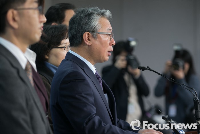 (서울=포커스뉴스) 더불어민주당에 입당한 조응천 전 청와대 공직기강비서관이 17일 오전 서울 여의도 국회 정론관에서 20대 총선 경기 남양주갑 출마 선언을 하고 있다.