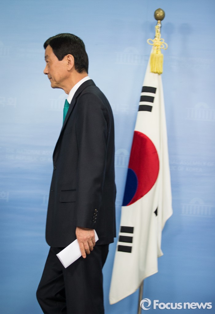 (서울=포커스뉴스) 공천에서 배제 된 새누리당 3선 중진 진영 의원이 17일 오후 서울 여의도 국회 정론관에서 탈당 공식 선언 후 회견장을 나서고 있다.