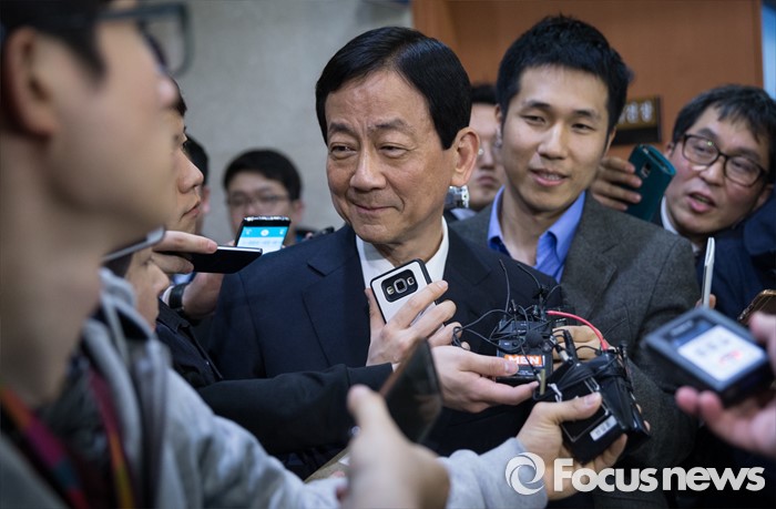 (서울=포커스뉴스) 공천에서 배제 된 새누리당 3선 중진 진영 의원이 17일 오후 서울 여의도 국회 정론관에서 탈당 기자회견 마친 후 기자들의 질문을 받고 있다.