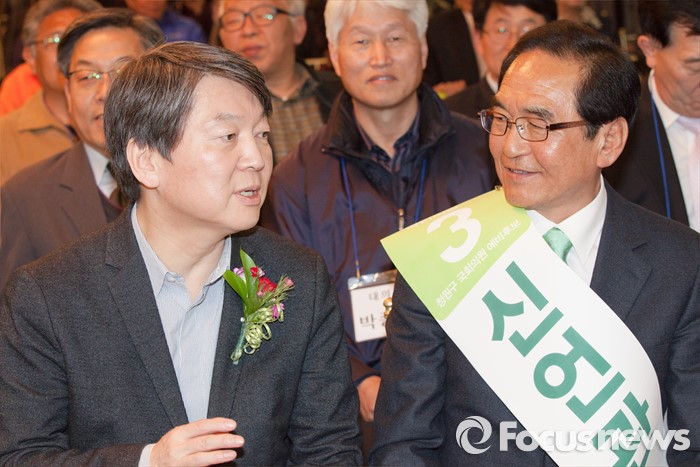 (청주=포커스뉴스) 17일 오후 충북 청주 흥덕구 리호관광호텔에서 열린 국민의당 충북도당 창당대회에서 안철수 공동대표가 신언관 충북도당 창당준비위원장과 대화하고 있다.