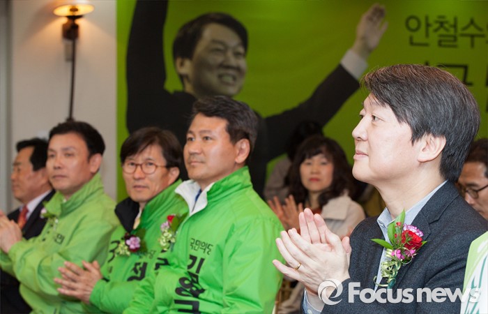 (청주=포커스뉴스) 17일 오후 충북 청주 흥덕구 리호관광호텔에서 열린 국민의당 충북도당 창당대회에 안철수 공동대표가 참석해 박수를 치고 있다.