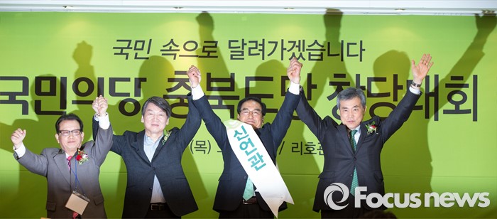 (청주=포커스뉴스) 17일 오후 충북 청주 흥덕구 리호관광호텔에서 열린 국민의당 충북도당 창당대회에서 안철수 공동대표와 당원들이 총선 승리를 다짐하고 있다.