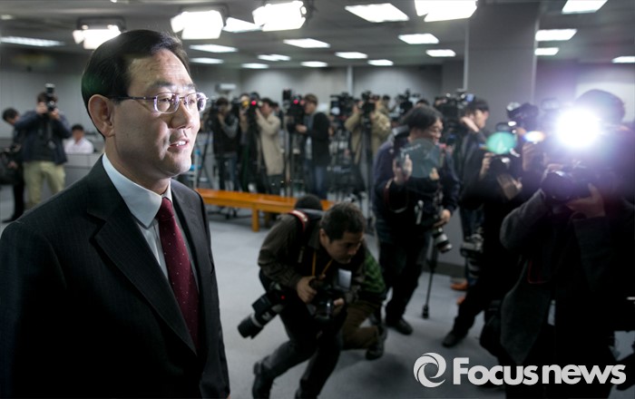 (서울=포커스뉴스) 공천 탈락한 주호영 새누리당 의원이 18일 오전 서울 여의도 국회 정론관에서 최고위원회의 재심 요구를 반려한 이한구 공천관리위원장과 관련 기자회견을 마친 뒤 퇴장하고 있다.