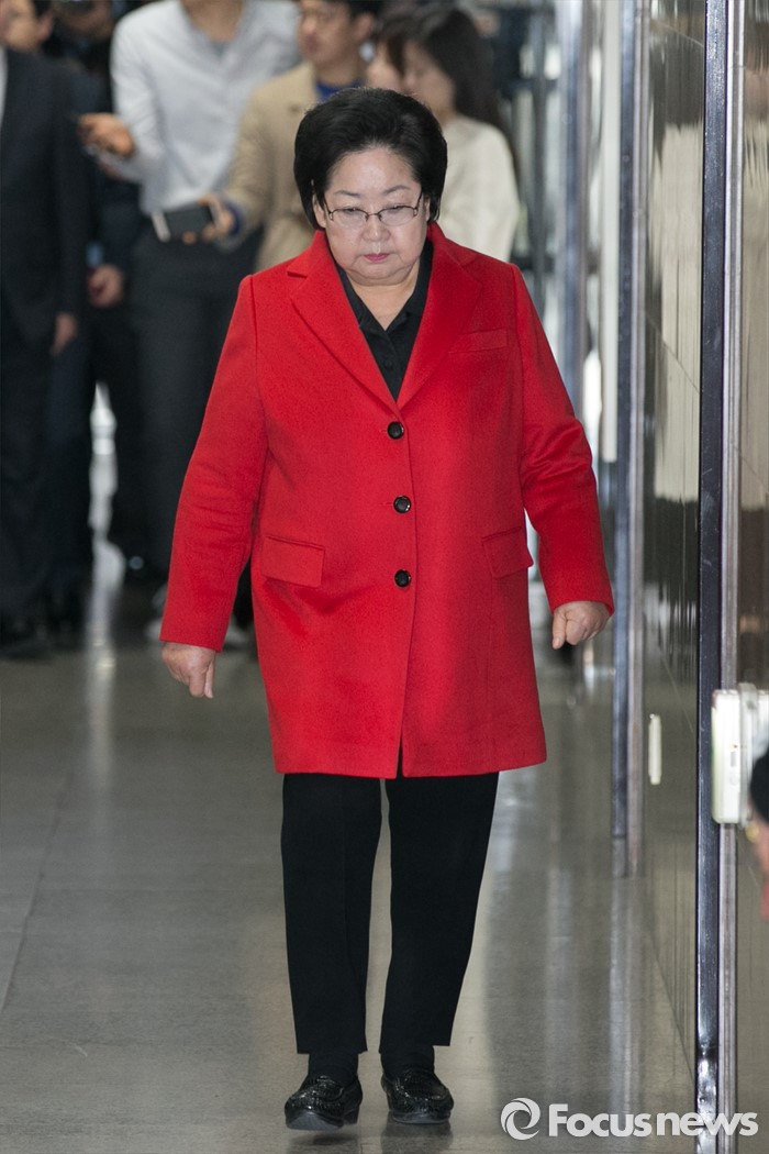 (서울=포커스뉴스) 김을동 새누리당 최고위원이 18일 오전 서울 여의도 국회에서 비공개 최고위원회의에 참석하고 있다.