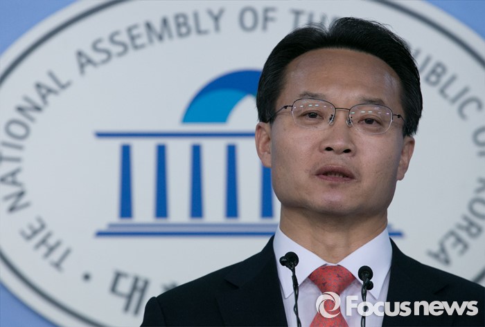 (서울=포커스뉴스) 공천 탈락한 조해진 새누리당 의원이 18일 오전 서울 여의도 국회 정론관에서 탈당 및 20대 총선 무소속 출마 기자회견을 하고 있다.