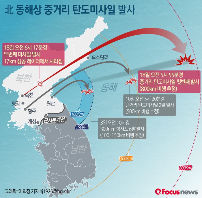 | △ [그래픽] 北 동해상 중거리 탄도미사일 발사 |