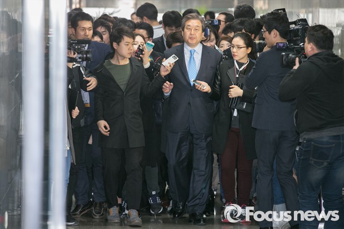 (서울=포커스뉴스) 김무성 새누리당 대표가 18일 오전 서울 여의도 국회에서 열린 비공개 최고위원회의를 마친 뒤, 기자들의 질문을 들으며 밖으로 나가고 있다.