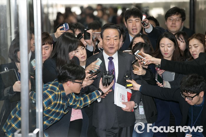 (서울=포커스뉴스) 서청원 새누리당 최고위원이 18일 오전 서울 여의도 국회에서 열린 비공개 최고위원회의를 마친 뒤, 기자들의 질문을 들으며 밖으로 나가고 있다.