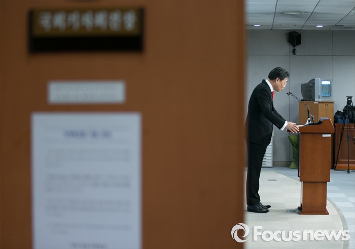(서울=포커스뉴스) 새누리당 20대 총선 후보 경선에서 탈락한 정문헌 의원이 18일 오전 서울 여의도 국회 정론관에서 여론조사 등과 관련 당 공천관리위원회의 발표에 이의를 제기하는 기자회견을 하고 있다.