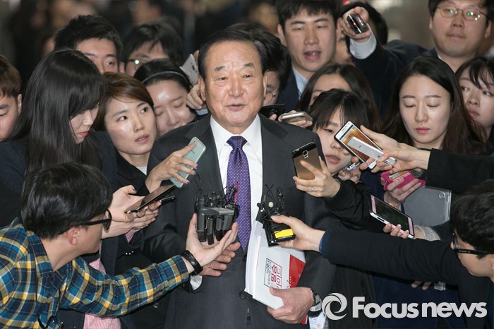 (서울=포커스뉴스) 서청원 새누리당 최고위원이 18일 오전 서울 여의도 국회에서 열린 비공개 최고위원회의를 마친 뒤, 기자들의 질문을 들으며 밖으로 나가고 있다.