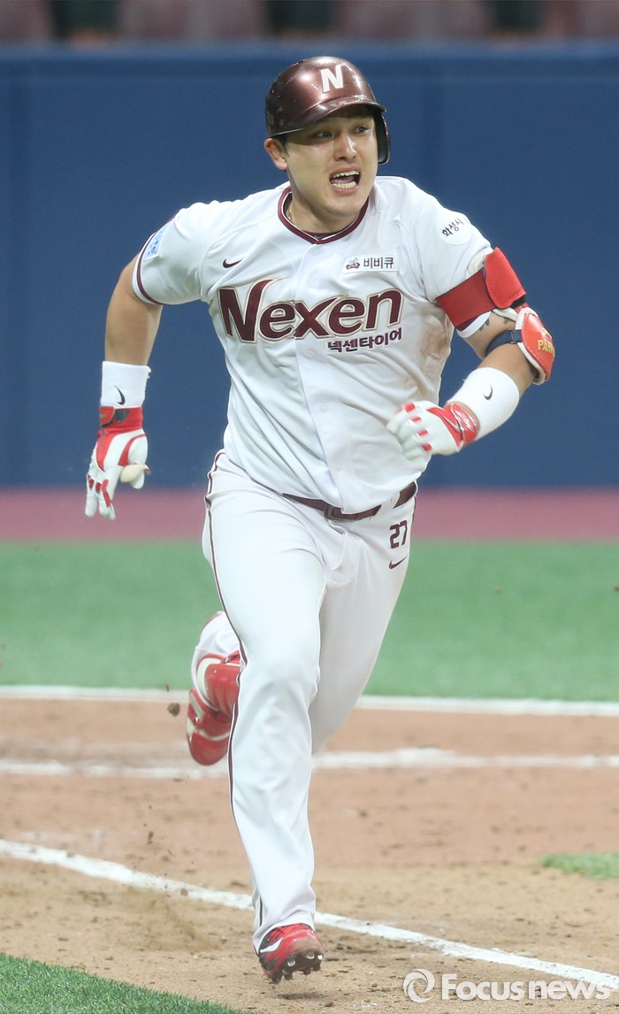 (서울=포커스뉴스) 18일 서울 고척스카이돔에서 열린 2016 프로야구 시범경기 두산-넥센 경기 4회말 넥센 선두타자 박동원이 우전안타를 때리고 1루를 향해 전력질주하고 있다.