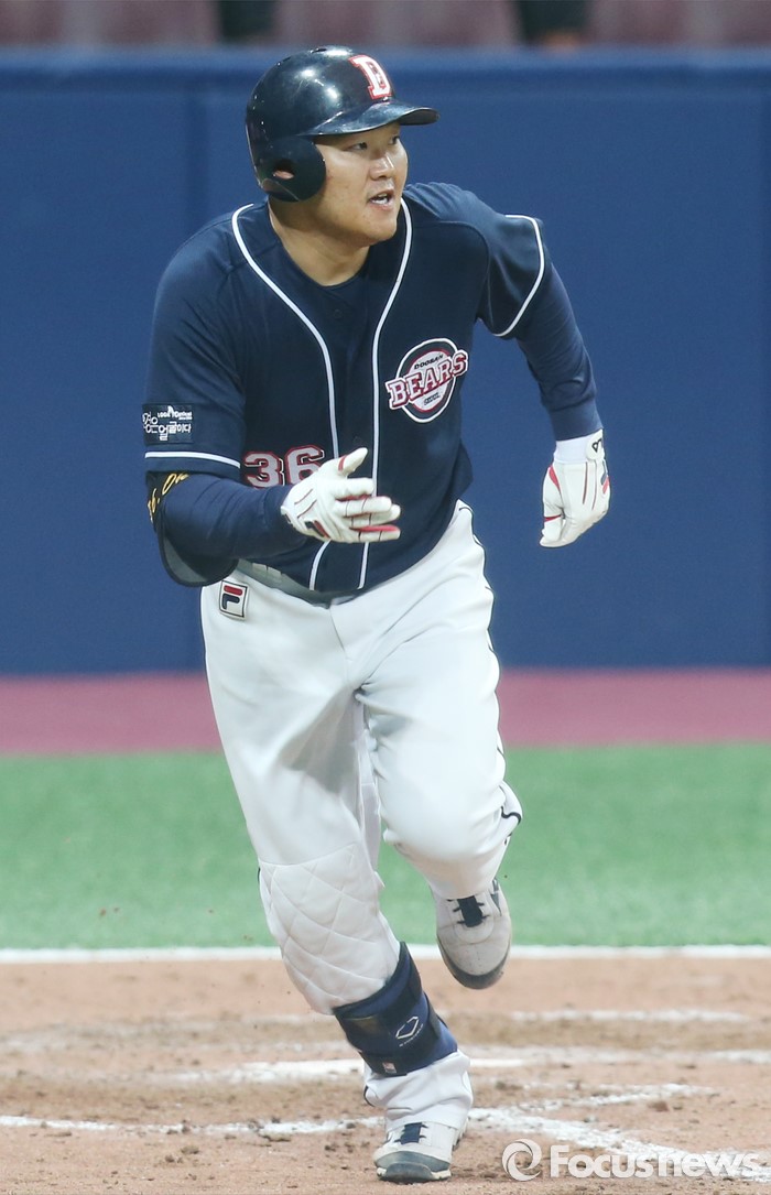 (서울=포커스뉴스) 18일 서울 고척스카이돔에서 열린 2016 프로야구 시범경기 두산-넥센 경기 7회초 두산 오재일이 중견수앞 안타를 날리고 1루를 향해 뛰어 나가고 있다.