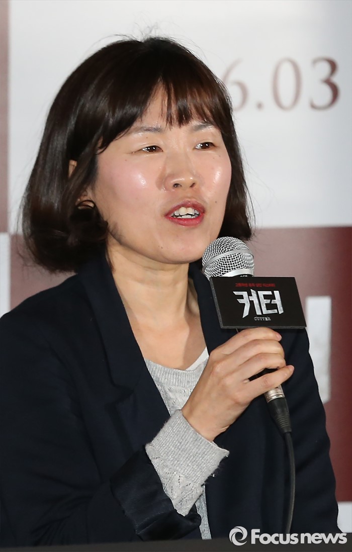 (서울=포커스뉴스) 18일 오후 서울 성동구 왕십리CGV에서 열린 영화 '커터' 언론시사회에 참석한 영화감독 정희성이 인사말을 하고 있다.