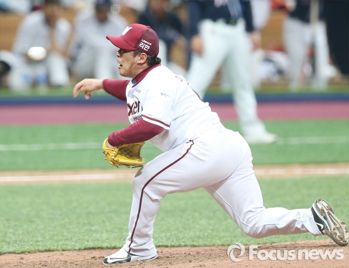(서울=포커스뉴스) 18일 서울 고척스카이돔에서 열린 2016 프로야구 시범경기 두산-넥센 경기 8회 넥센 투수 마정길이 투구하고 있다.