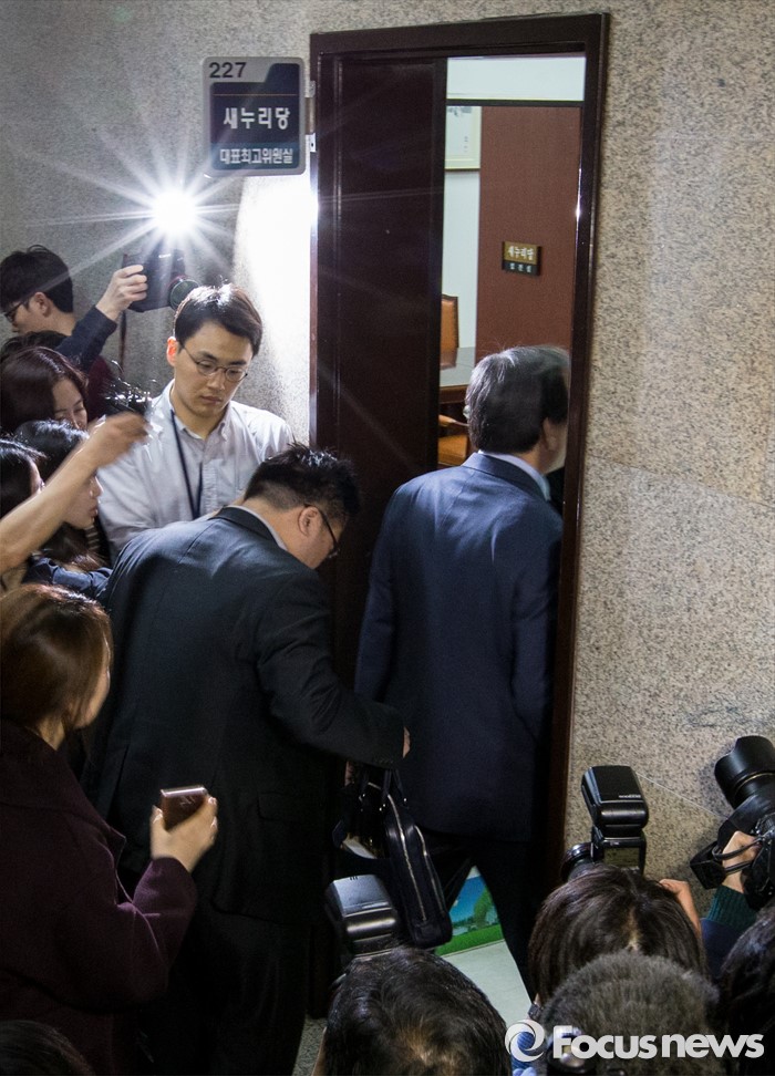 (서울=포커스뉴스) 김무성 새누리당 대표가 18일 오후 서울 여의도 국회 대표최고위원실에서 열린 최고위원회의에 참석하고 있다.