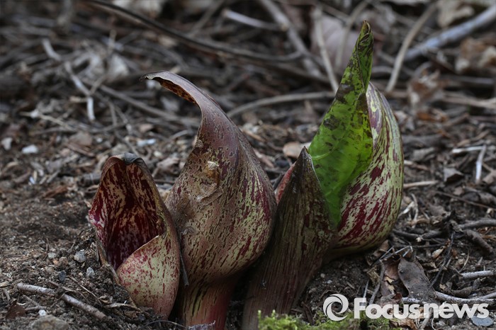 (하남=포커스뉴스)봄 기운이 완연한 19일 오전 경기도 하남시 검단산자락에 앉은부채들이 겨우내 얼었던 대지를 뚫고 돋아나 꽃망을을 터트리고 있다.꽃이지고나면 잎이 돋아난다.<사진제공=이준택교수>