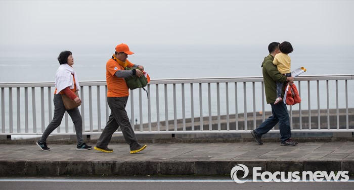 (제주=포커스뉴스) 19일 오전 제주 서귀포 중문관광단지 일원에서 제18회 서귀포 유채꽃 국제걷기대회가 열리고 있다. 대회 참가자들이 색달해변을 향해 걸어가고 있다.