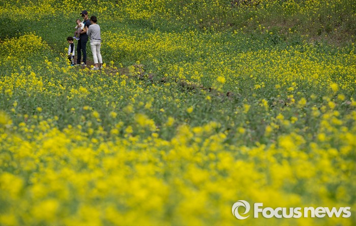(제주=포커스뉴스)19일 오전 제주 서귀포 중문관광단지 일원에서 제18회 서귀포 유채꽃 국제걷기대회가 열리고 있다. 걷기대회에 참가한 관광객들이 엉덩물계곡 유채꽃길을 걷고 있다.