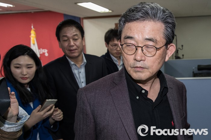 (서울=포커스뉴스) 이한구 공천관리위원장이 19일 오후 서울 영등포구 새누리당사에서 총선 공천을 위한 여론조사 경선 결과 발표를 마치고 이동하고 있다.