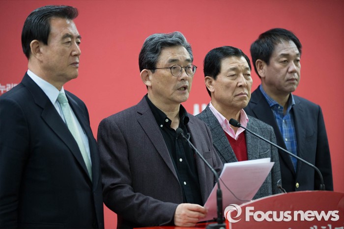 (서울=포커스뉴스) 이한구(왼쪽 두번째) 공천관리위원장이 20일 오후 서울 여의도 새누리당 당사에서 20대 총선 공천경선지역 여론조사 결과를 발표하고 있다.