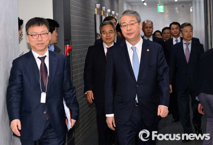 (서울=포커스뉴스) 임종룡(가운데) 금융위원장이 21일 오전 서울 종로구 더케이트윈타워에서 열린 '인터넷은행 현장간담회'에 참석하고 있다.
