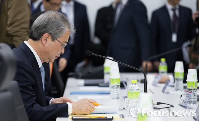 (서울=포커스뉴스) 21일 오전 서울 종로구 더케이트윈타워에서 열린 '인터넷은행 현장간담회'에 참석한 임종룡 금융위원장이 자료를 살펴보고 있다.