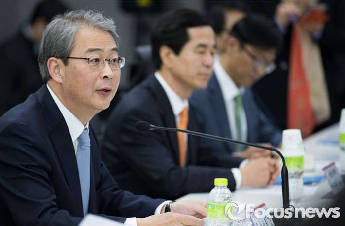 (서울=포커스뉴스) 21일 오전 서울 종로구 더케이트윈타워에서 열린 '인터넷은행 현장간담회'에 참석한 임종룡(왼쪽) 금융위원장이 모두발언 하고 있다.