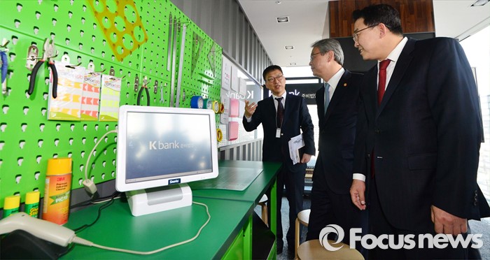 (서울=포커스뉴스) 임종룡(오른쪽 두번째) 금융위원장이 21일 오전 서울 종로구 더케이트윈타워에서 열린 ‘인터넷은행 현장간담회’에 참석해 아이디어룸을 살펴보고 있다.