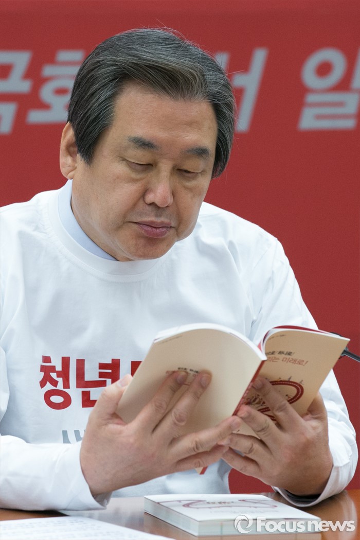 (서울=포커스뉴스) 김무성 새누리당 대표가 21일 오전 서울 여의도 국회에서 열린 최고위원회의에 참석해, 20대 총선 정책공약집을 보고있다.