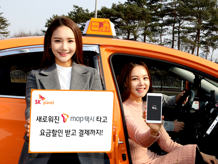 (서울=포커스뉴스) SK플래닛은 21일 택시 안의 결제기와 연동해 택시 요금할인에 요금 결제 기능을 더한 ‘T맵 택시 2.0’을 내놨다.